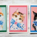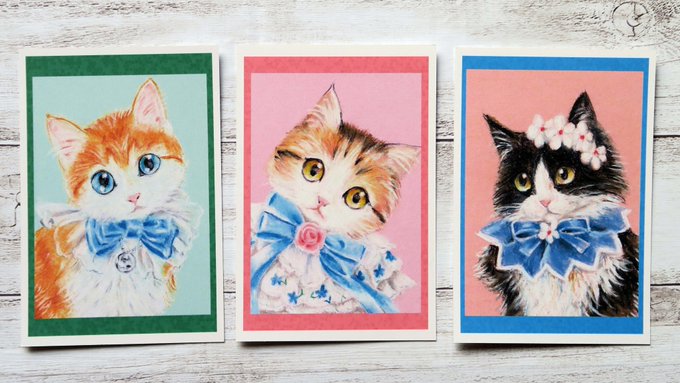おリボン付きスタイの猫ちゃんのパステルイラストがポストカードになりました😸🎀💙 3枚セットで販売しております☺️ ぜひご覧ください🥰 minne.com/items/36129112 creema.jp/item/15763036/… #minne #minneで販売中 #猫 #猫好きさんと繋がりたい #猫イラスト #Creema #Creemaで販売中