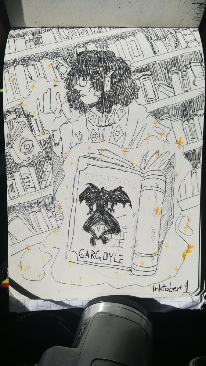 INKTOBER 01 Gargoyle Featuring my OC Odán, the female orc. She's not a common orc, as you'll find out by reading with attention the clues I'll give 😉 #inktober #inktober2022 #day1 #gargoyle #originalcharacter #odán #odanmrakkulak