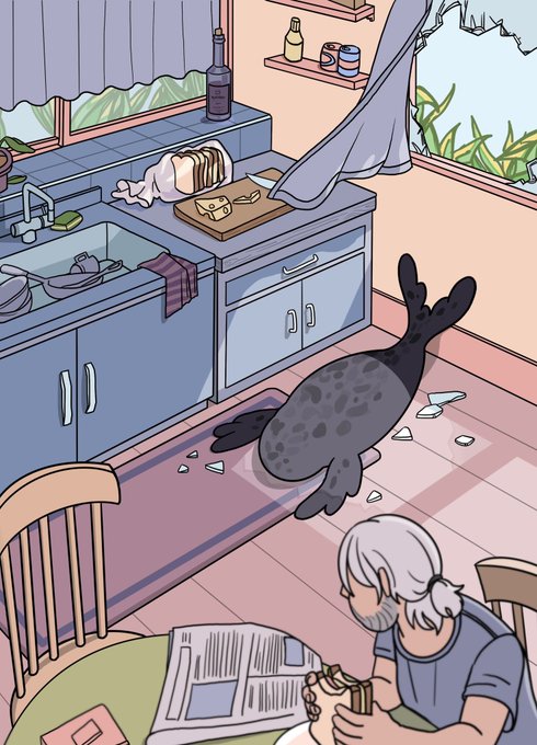 🦭: Good morning hank! Hank and seal connor’s peaceful morning 2😙 #hankcon #selkieconnor #행코 #dbhfanart