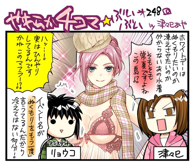 VV4コマ252回が公開されました!よろしくお願いします doax-venusvacation.jp/cartoon_info/3… ⊂(・ω・*) 着くずれ見た時「紐パン(水着)」かと思ったんですが、運営から「薄い布があるので違います」という驚愕の事実を告げられた結果、 最後のコマのリョウコさんのセリフが飛び出しました #DOAXVV #ブイブイ twitter.com/doax_vv_staff/…