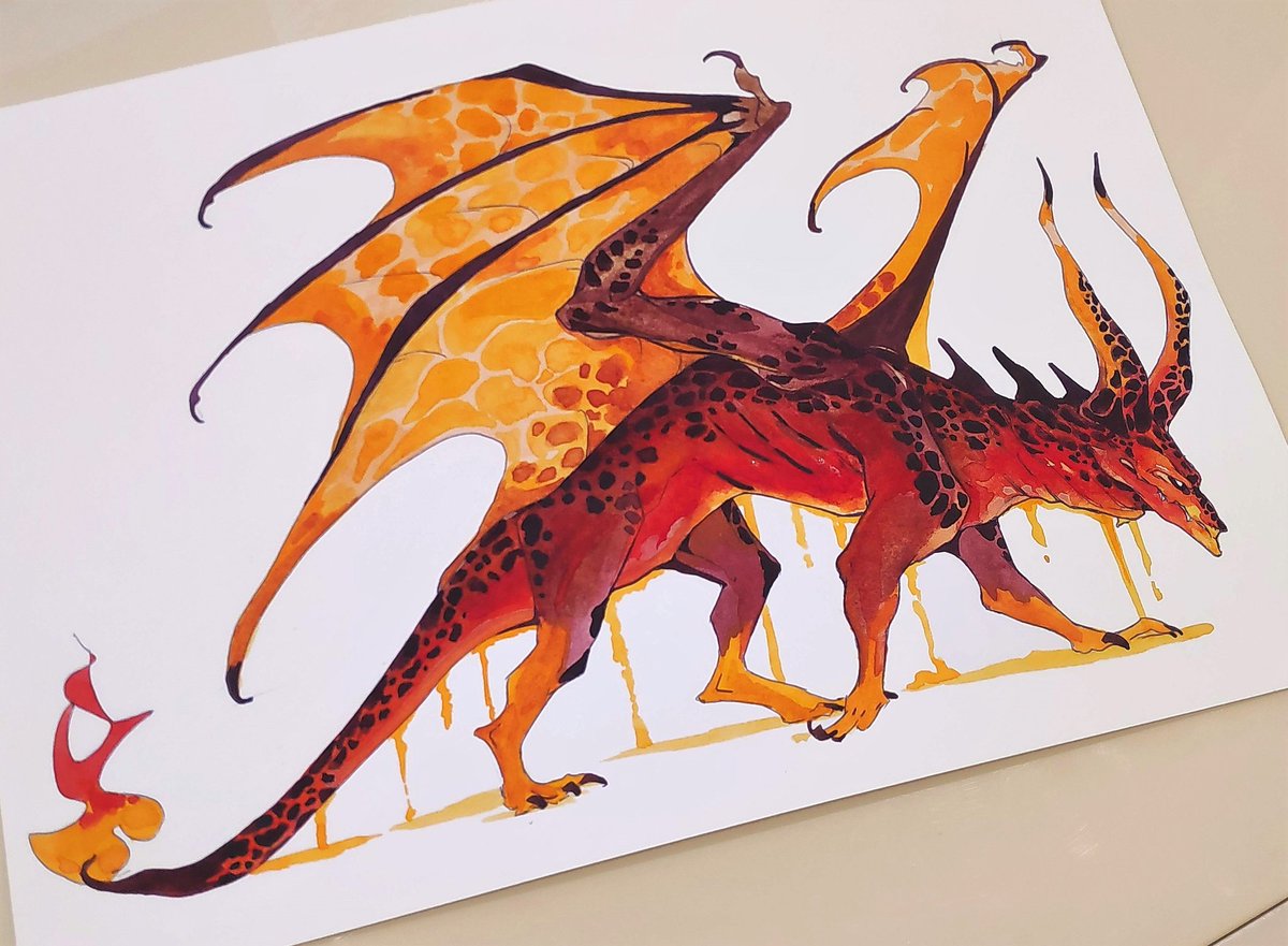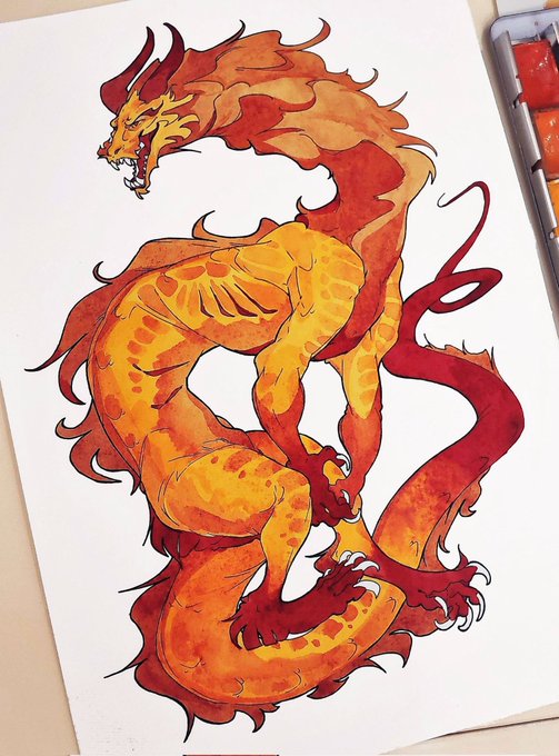 #art #dragon #traditionalart #watercolor Red is one of my favorite colors. I often try to paint dragons in warm reds. Lava dragon. XD
