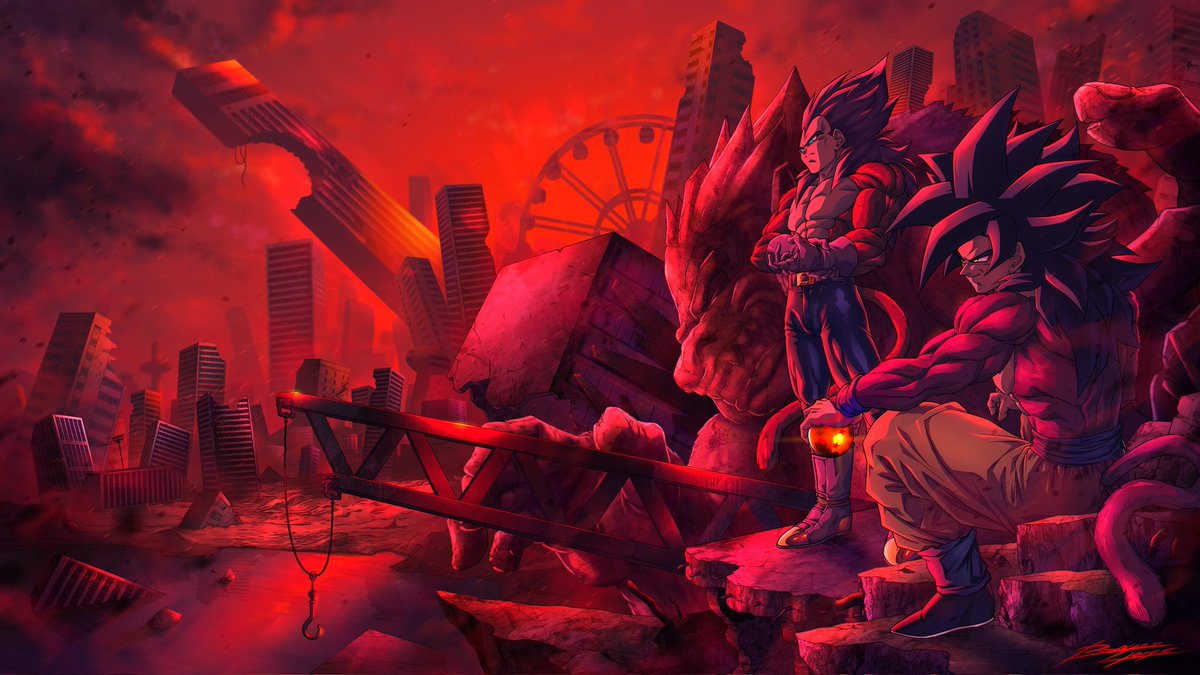 Hello‼️ Me voici avec une illustration qui a demandé beaucoup de taff de m'a part. #Goku & #Vegeta SSJ4 dans un décor et une atmosphère assez sombre.🩸 Je suis assez satisfait de l'ambiance globale. N'hésitez pas à like+RT pour plus d'illustrations du genre. 🙏 #DragonBallGT