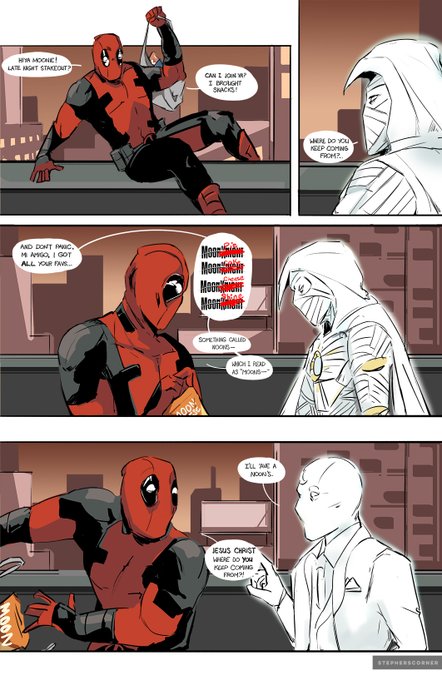 #MiguelOHara #Deadpool 因为“不小心”破坏了ml的纳米战衣,dp请pbp教他为ml织毛衣,作为道歉的赔礼。结果... Miguel:“奇怪...为什么我觉得上当了?” twitter.com/RealSilentShee…