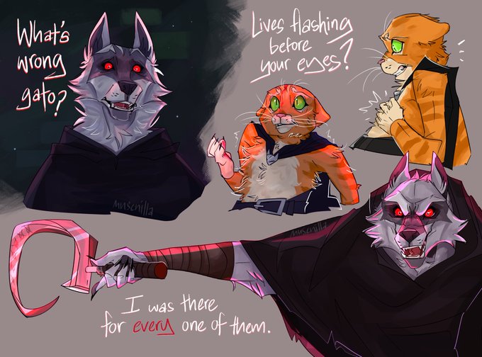 “Lives flashing before your eyes?” #pussinboots2 #pussinbootsthelastwish #illustration #dreamworks #death #wolf