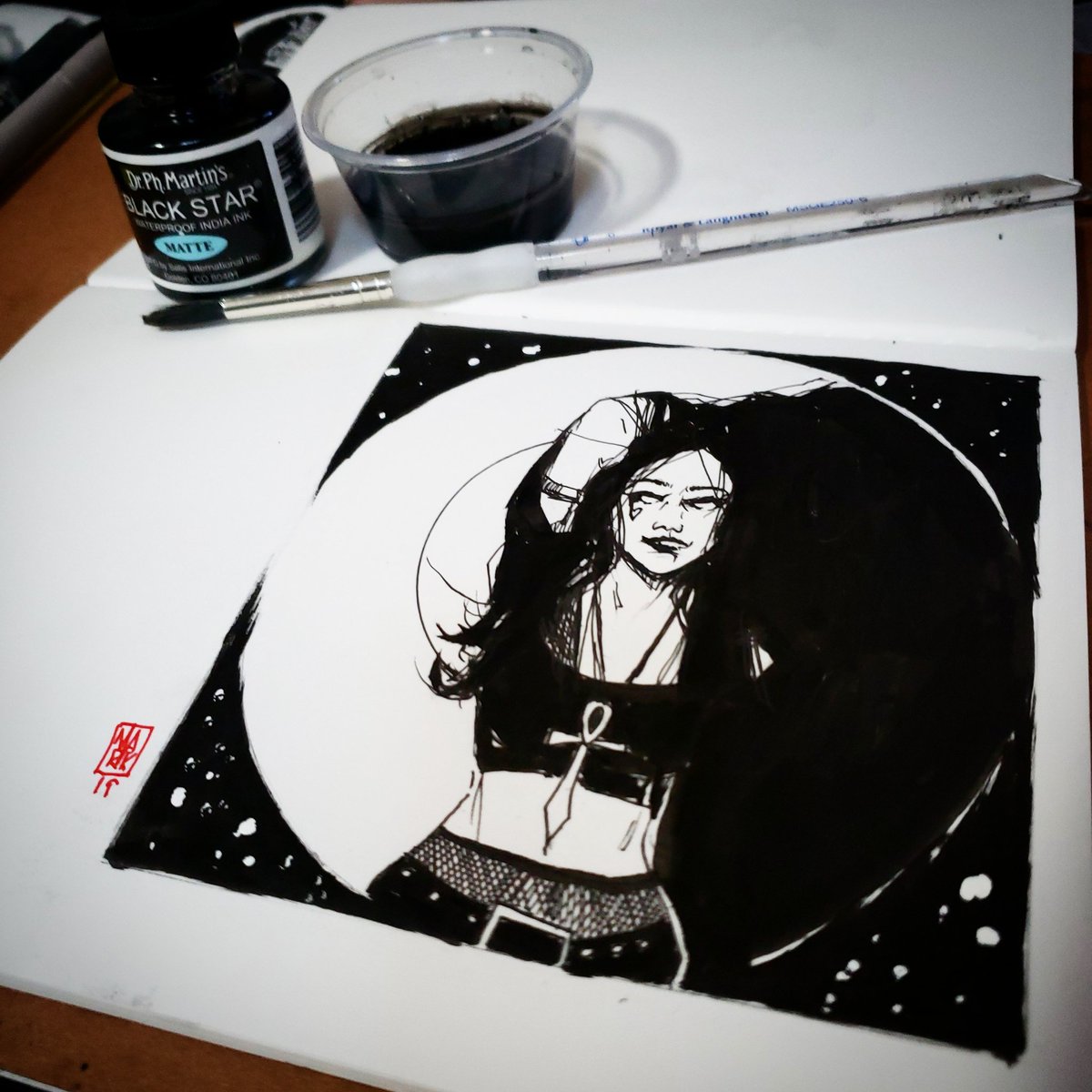 Death of the Endless take three. Trying to make lemonade. #death #dcvertigo #sandman #deathoftheendless #dccomics #gesso #parallelpen #speedballink #inktober #inktober2018