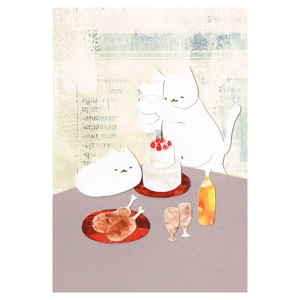 クリームに擬態したみーこ カードを開くと メッセージを書き込めるスペースが あらわれます トレーシングペーパーの ミニ封筒に入った状態で 販売します☺︎ #にゃんことみーこ #絵 #イラスト #illustration #xmas #デザフェス #designfesta #デザフェス56