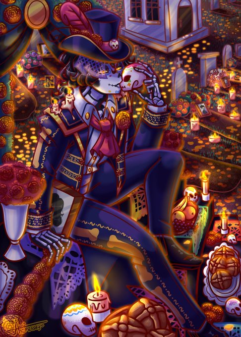 Solo UN día vacío, no dejaron descansar JFSFSDF Pero aquí yace otro bello chico en esta parte del mundo. A que acompañe a los fallecidos a descansar en paz ✨ 🕯️🕯️Feliz día de de Muertos amores~🕯️🕯️ #OC #myartwork #DiaDeMuertos