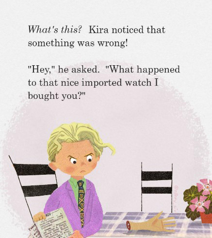 Kira's having girl trouble lol she's a bit of a handful ✋ I am catching up posting these to Twitter! I think I have a couple more? I don't know! #yoshikagekira #kirayoshikage #jjba #jojosbizarreadventure #diamondisunbreakable #childrensbookillustration #photoshop #artshare