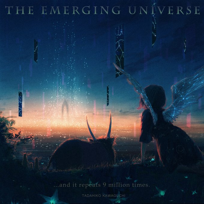 育まれた奇跡 羽化する世界 星々は瞬き 命たちは瞬き 世界は神話を所有する The nurtured miracle was released The universe is emerging Twinkle of stars Blink of life The world has myths #digitalarts #薄明 #イラスト #今月描いた絵を晒そう