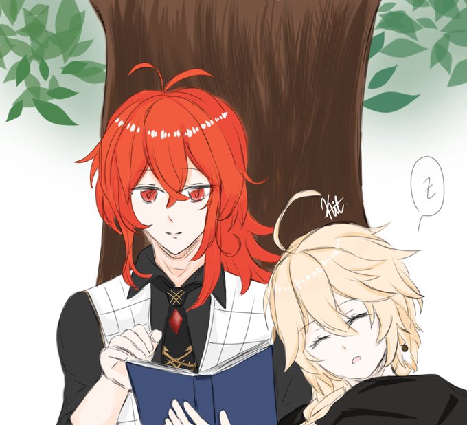 Napping after a hard day of adventuring~ #Diluc #Aether #DilucAether #GenshinImpact #genshinimpactfanart