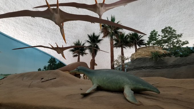 #WISwednesday beach vibes at the @SternbergMuseum Geosternbergia, Corythosaurus, & Dolichorhynchops #paleontology #museum #diorama #paleoart