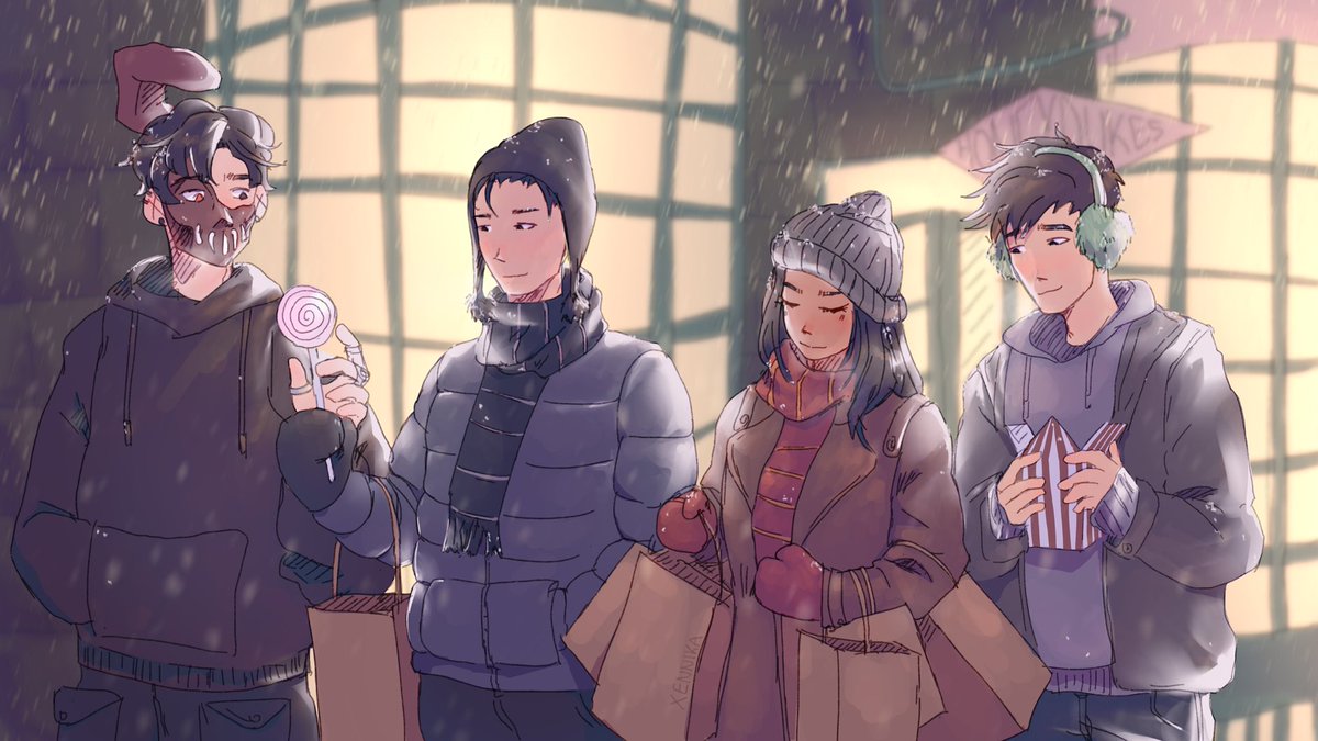 Hogwarts amigops in Hogsmeade ❄️ #amigops #amigopsfanart #corpsehusband #disguisedtoast #valkyrae #sykkuno