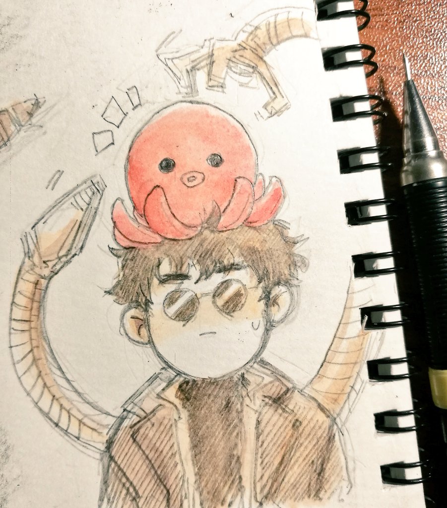 ✨Timeskip!Otto getting to relax in the morning✨ #ottooctavius #doctoroctopus #spiderman #ArtistOnTwitter #spidermanfanart