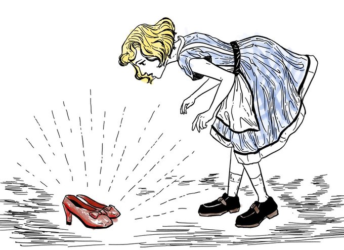 Day 6: Empty Shoes 👠 Decided to draw this scene in the original Oz illustration style of John R. Neill :) I did ok 😅 #inktober2021 #drawtober #10embers #ArtistOnTwitter #characterart #digitalillustration #procreate #procreateart #wizardofoz #lineart #Dorothy #Oz #emptyshoes