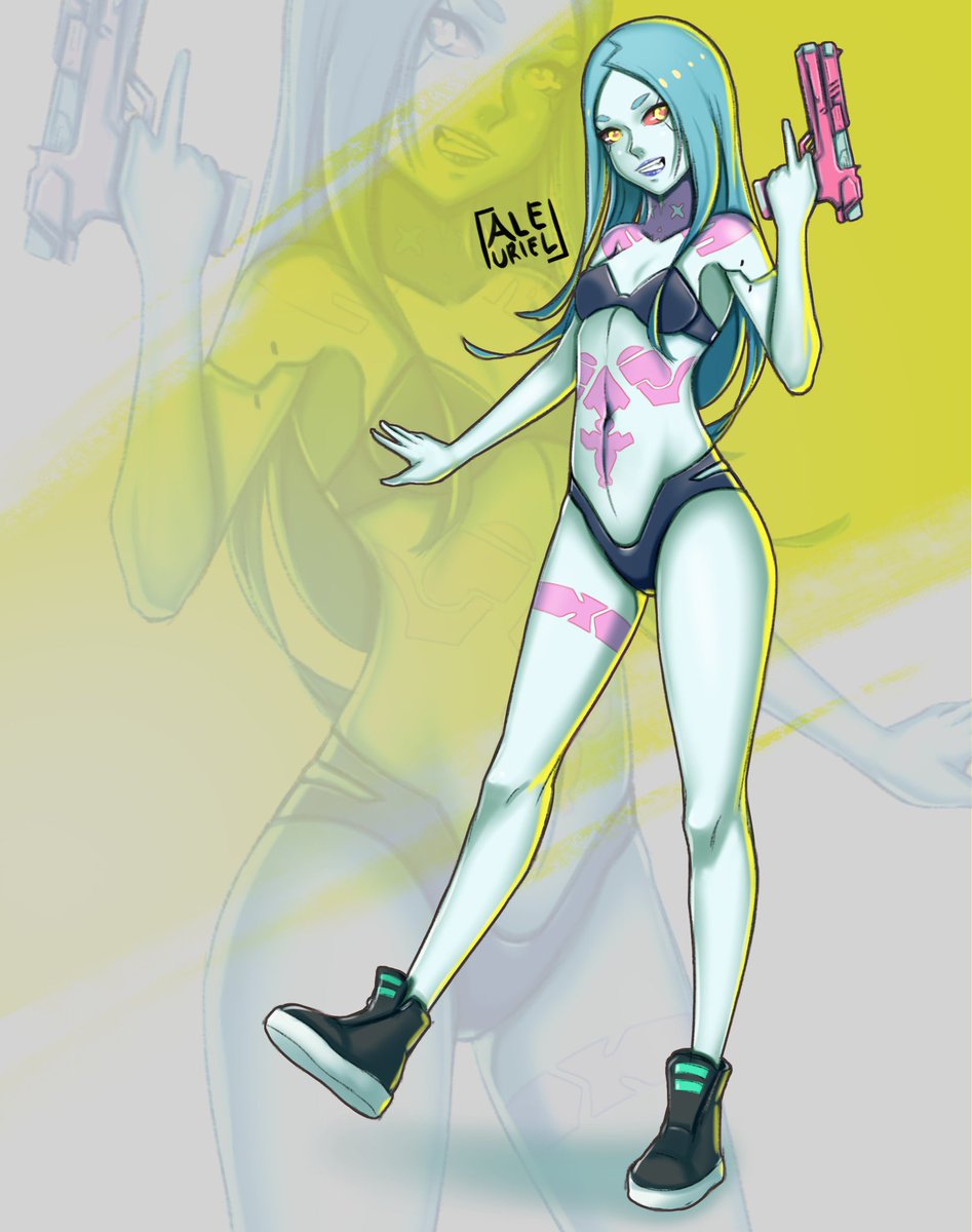 Rebecca from Edgerunners done c: I know this is not the hand gesture she does, sorry :c #cyberpunk #edgerunners #edgerunnersrebecca #cyberpunkrebecca #cyberpunkart #cyberpunkedgerunners #イラスト #イラストレーター #サイバーパンク