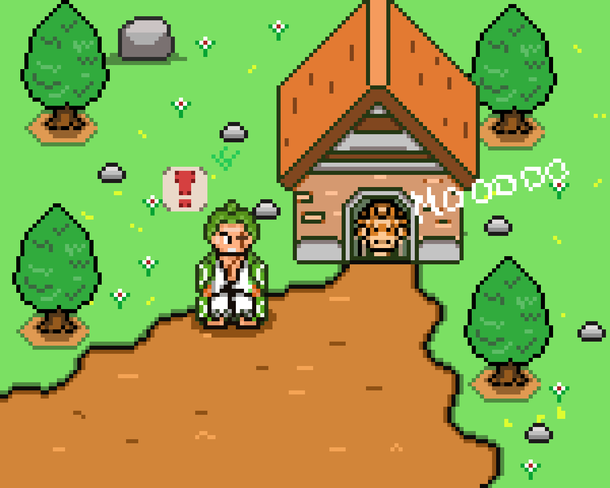 #onepiece986 epic fufuufu. sementara Roronoa Zoro sedang menjaga hewan kurban. #pixelart #EidAlAdha