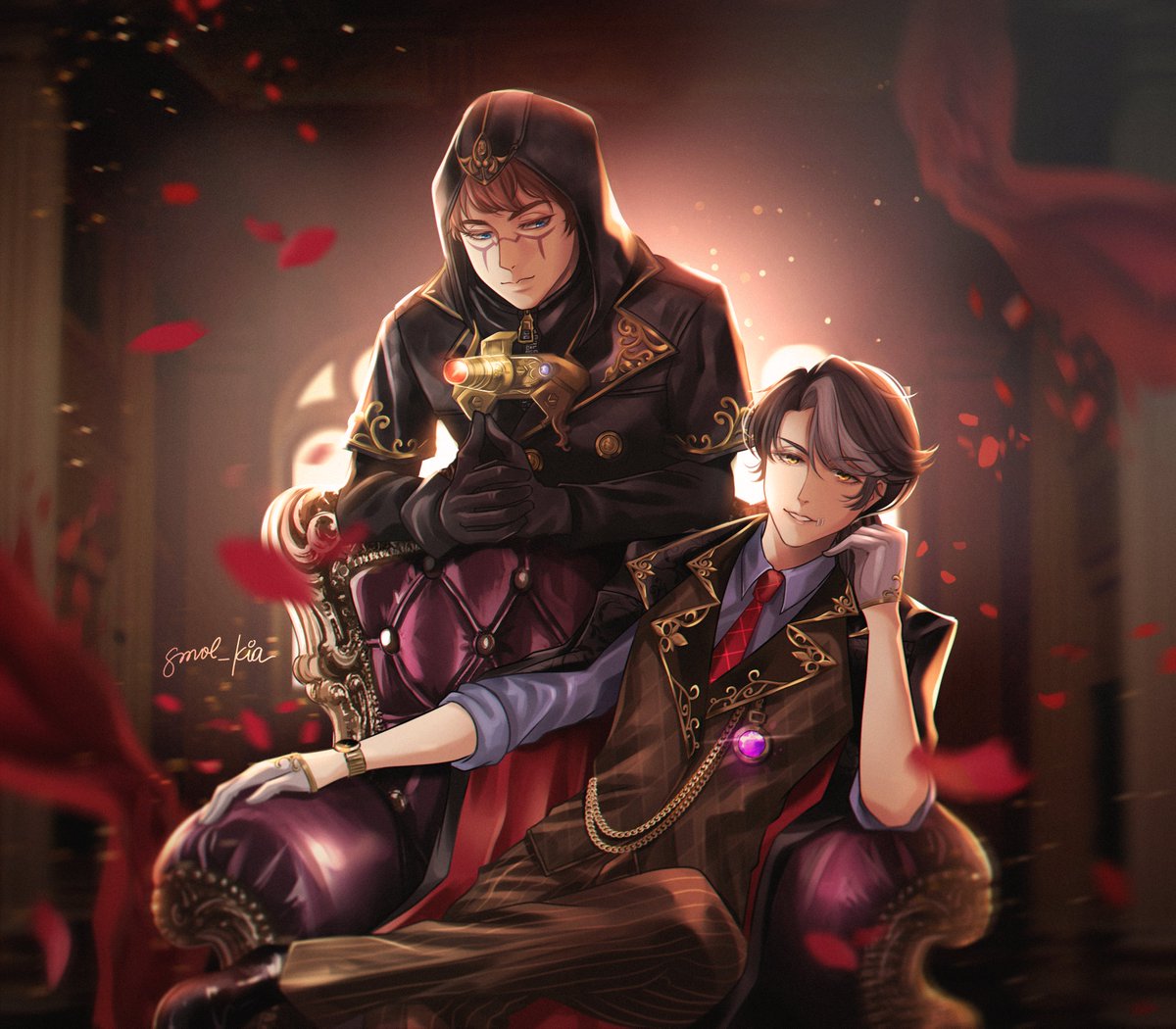 "I thought i saw an angel, or rather... a fallen angel." finally sth not-a-sketch for my otp #IdentityVイラスト #第五人格イラスト #占納 #EliSop #EliCarl #Divibalmer