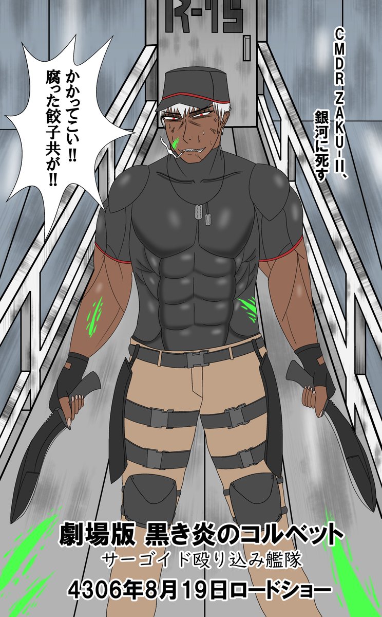 CMDR ZAKU-Ⅱ(RP Name:Null Krieger)さんの誕生日を祝ってサーゴイドと戦う姿を描きました。オデッセイの到来で彼らと人として戦う日が来るのでしょうか?乞うご期待! #EliteDangerous