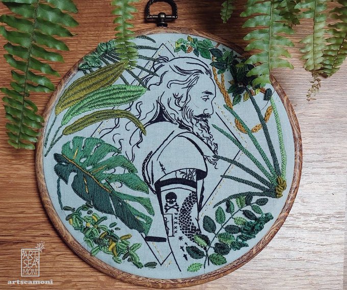My Blackbeard + Greenery embroidery is finally done! Yay!💚🌱🍃🌿🪡🏴☠️ #ofmdart #ofmd #edwardteach #embroidery