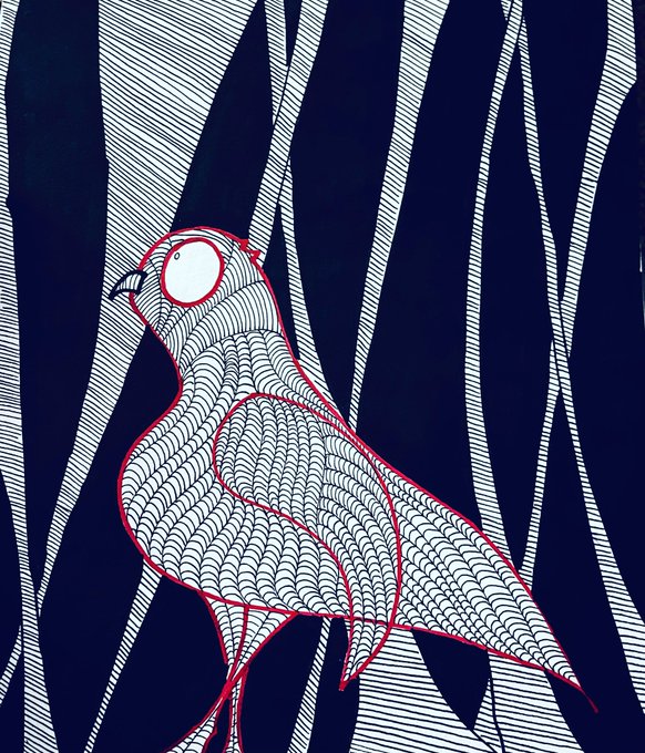 'Fear Bird' Lots of challenges ahead this year, so I made this illustration to remind myself of a strategy that worked well in the past #Fear #fearless #illustration #affirmations #anxiety #kidlitart #BigEyes #illustrationart #bird #childrensillustration