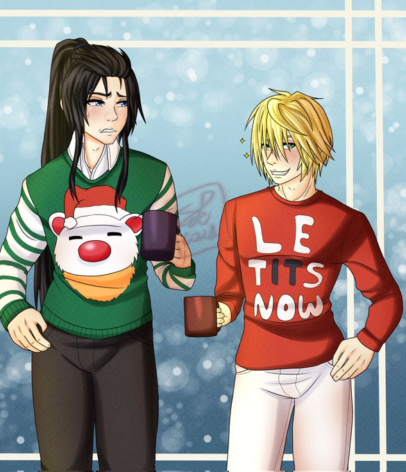 The time of the ugly Christmas Sweaters has arrived, and I believe that there are only two kinds of approach to them 🎅🏻 #FFBE #FFBEWW #fanart #digitalart #FinalFantasy #Christmas2021 #Christmas