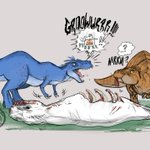 "Dino Discourse" Scene from ep 107 campaign 2, where the #MightyNein kills a dinosaur in order to feed a village, but T-rexes has an intellect of 2 and the wizard gets peckish after the fight... #CriticalRole #CriticalRoleFanart #CriticalRoleArt #Fnart #CalebWidogast #Jester