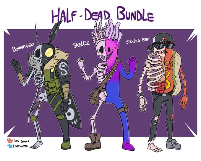 💀[CONCEPT TIME]💀 Based on Peely Bone, here is the Half-Dead bundle! 1.5 skins that are all new versions of some of our favorite friends, including Bonemando, Skellie and The Spoiled Brat! what? this anatomy isn't correct? I know! #Fortnite #FortniteArt #Fortnitemares