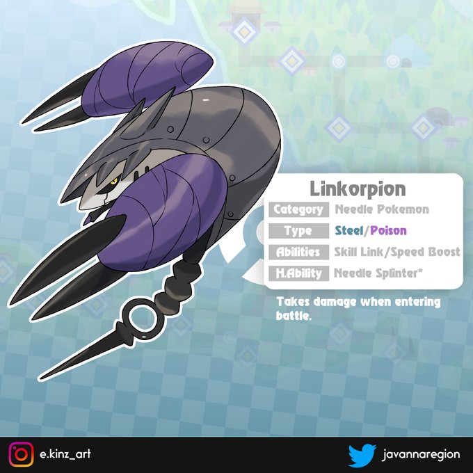 Your Scorpyarn evolved! • Linkorpion • The Needle Pokémon • • Linkorpion is based on, Sewing Needle, Scorpion, Rusted metal, Scissors, and Threads • • #fakemon #fakemonart #javannaregion #pokemonfanart #pokemon #indonesia #pokemonblood #pokemonbone #pokemonfangame
