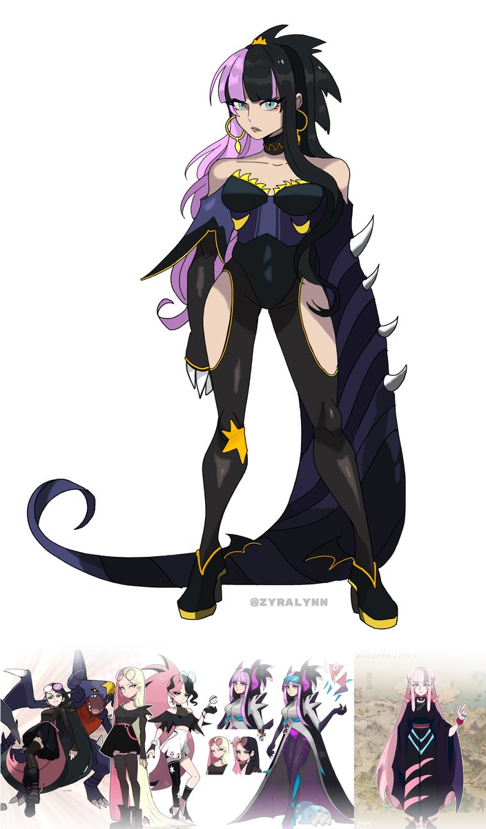 I drew again my #Pokesona because Pokemon Scarlet and Violet hyped me a lot. Here it is Evelynn Lotus, a Dragon Master of Paldea! Also you can see below the older versions of her! #Fakemon #FakemonArt
