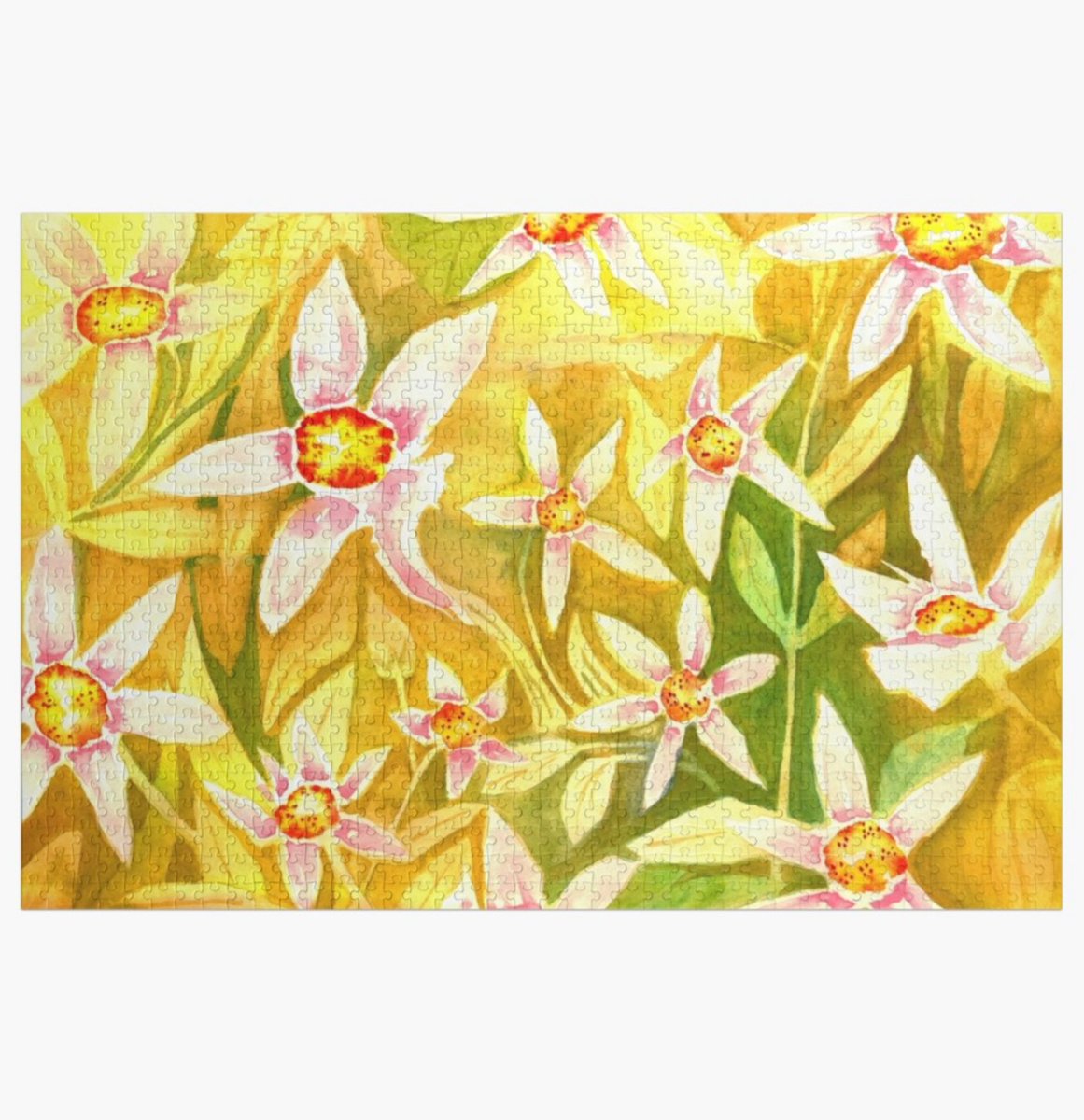 Relaxing jigsaws tinyurl.com/y4vfm2pd 30, 110, 252, 500, 1000 pieces. Traditional family hobby in a nice tin too :) #Flowers #Floral #Watercolour #FamilyFun #Hobby #Relaxing #Jigsaws #SupportSmallBusinesses #SupportArtists #Games #Puzzles #Home #Redbubble #Toys #Kids #Tin