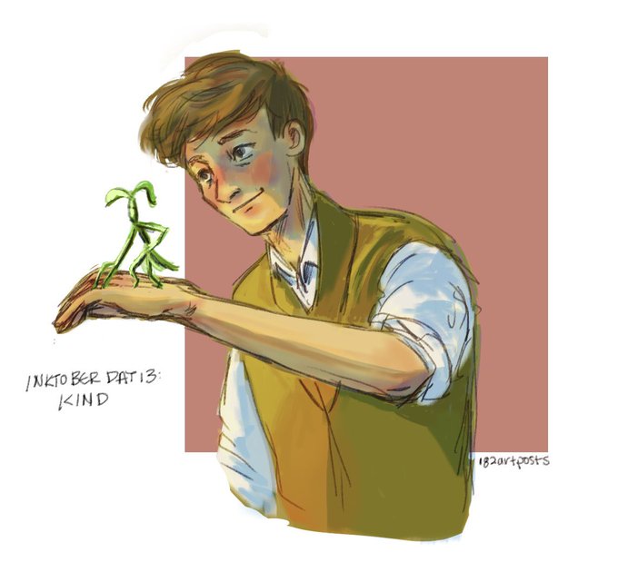 Inktober day 13: kind … here’s a lil Newt and Pickett (never found a monster he couldn’t love) #inktober2022 #inktober2022day13 #newtscamander #fantasticbeasts #HarryPotter #fanart #digitalart #artist #CLIPSTUDIO #art