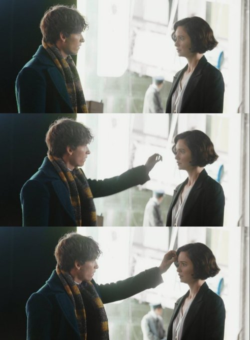 "Newt gazes at Tina - awkwardly affectionate. He gently reaches foward and touches her hair." - Fantastic Beasts and Where to Find Them. The Original Screenplay (2016) #ニューティナ #newtina #FantasticBeasts