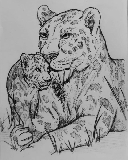DIA 16 - #FELIDAE Amphimachairodus giganteus. Aspirando a llegarle a la suela de los zapatos al gran @MAntonPaleoart #Paleontology #PaleoArt #InktoberPaleo2019 #Inktober2019 #Paleoctober #InktoberDay16