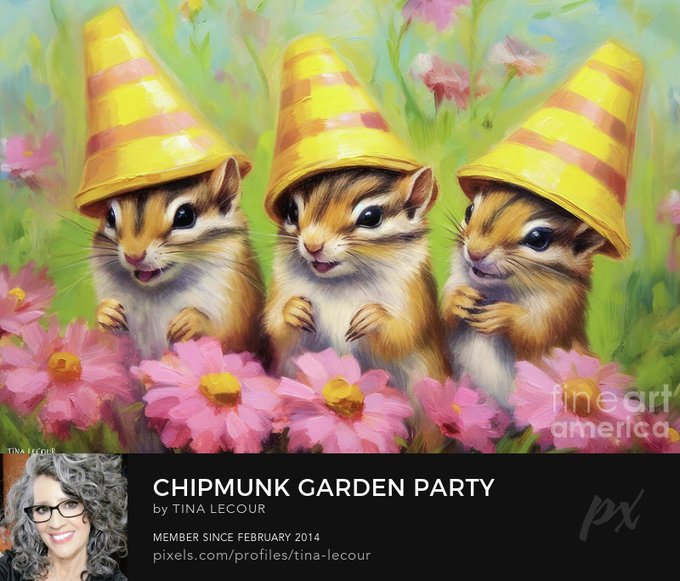 Chipmunk Garden Party..Can Be Purchased Here..tina-lecour.pixels.com/featured/chipm… #animals #cute #party #fun #Squirrels #wallart #homedecor #interiordecor #interiordesigner #buyintoart #ayearforart #gifts #giftideas #ToddlerLife