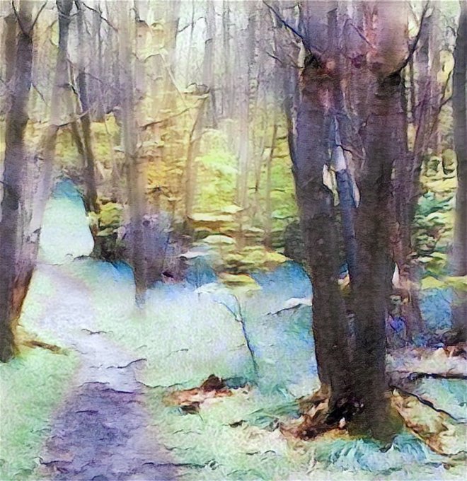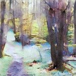 Just a hint of bluebells in the woods - am waiting for a carpet if blue - #woodland #trees #bluebells #spring #art #artwork #artist #sunshine #kent #walking #BlossomWatch #GardeningTwitter