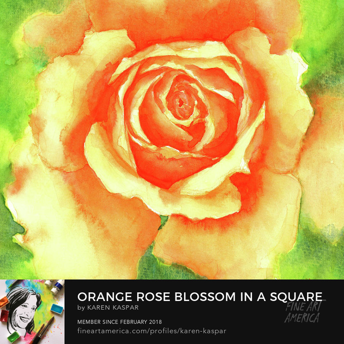 Enjoy summer feeling with the scent of roses in this watercolor painting of a beautiful rose blossom in shades of warm orange and peach on a green background in a summer flower garden. karen-kaspar.pixels.com/featured/orang… #rose #garden #flowers #BuyIntoArt #GardeningTwitter #watercolorart