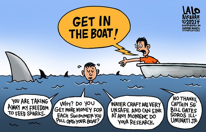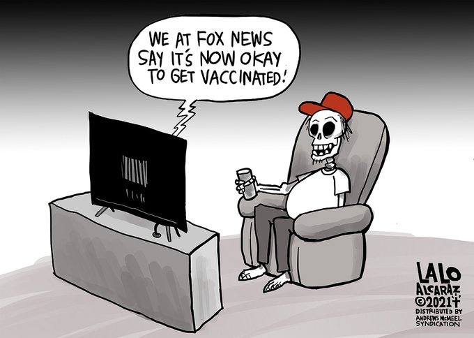 The only people still dying from Covid-19 are the unvaccinated. #GetVaccinated ! Please share #laloalcaraz cartoons