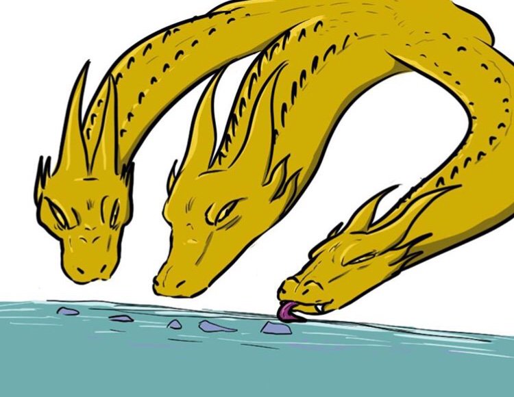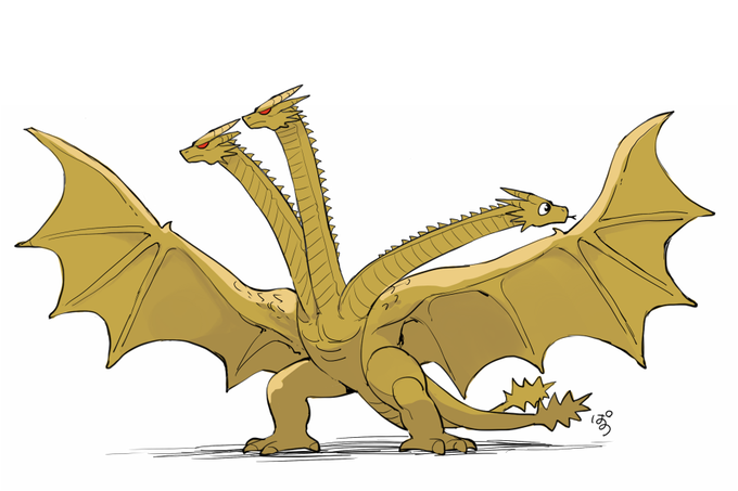 Weird tiny Ghidorah with a color variant! 👑 #Godzilla #KingGhidorah #Art #Illustration #Kaiju #Ghidorah