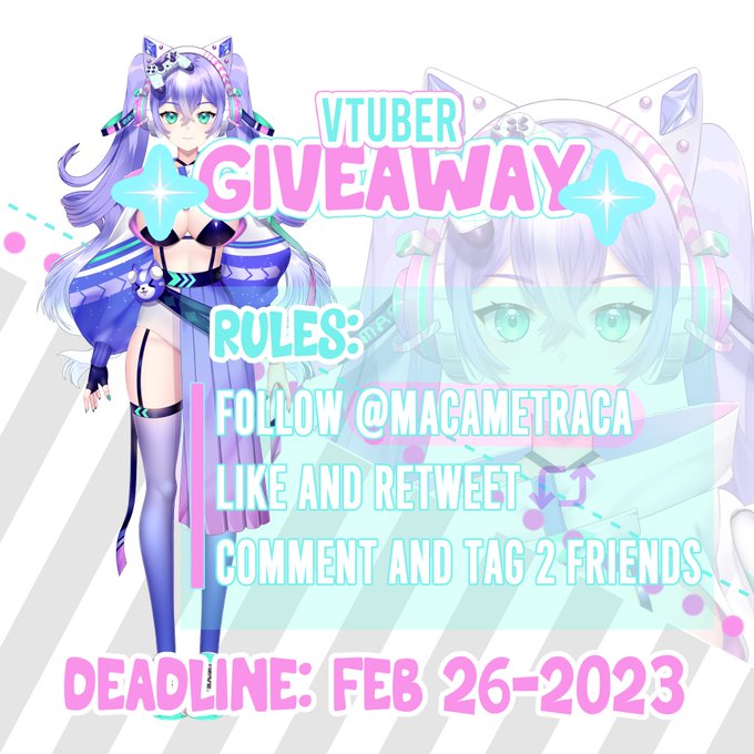 A kind person donated for a Vtuber Giveaway! Rules: -Follow me (@MacaMetraca) -Like and RT -Comment and Tag 2 Friends! OPTIONAL: Suscribe to my Youtube channel: Maca Metraca The Winner will get: -Fullbody Vtuber -Rigging Deadline: 26/02/2023 #vtuber #Giveaways #Vtuber素材