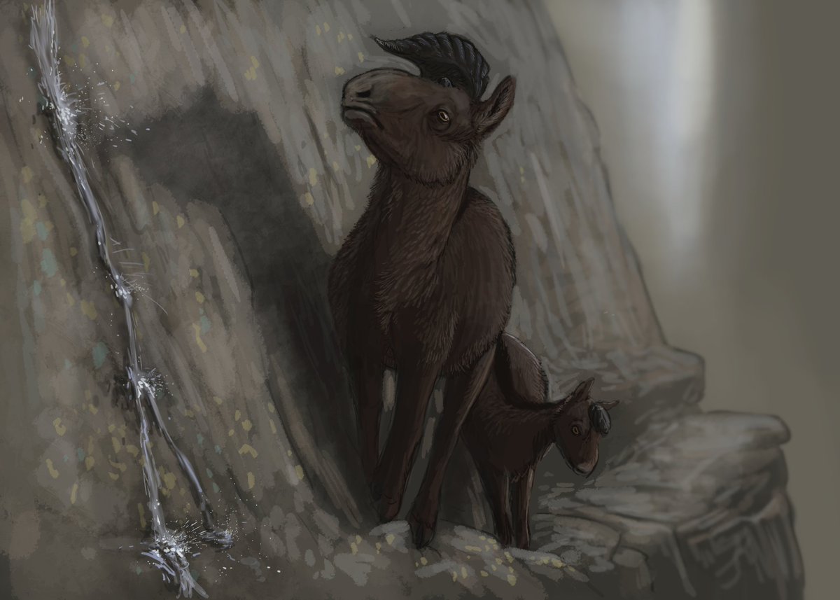 Results from the #MothersDay #paleostream Maiasaura, Argentoconodon, Machairodus and Tsaidamotherium. #paleoart #dinosaurs #hadrosaur #sabertoothcat #jurassic #goat #unicorn