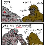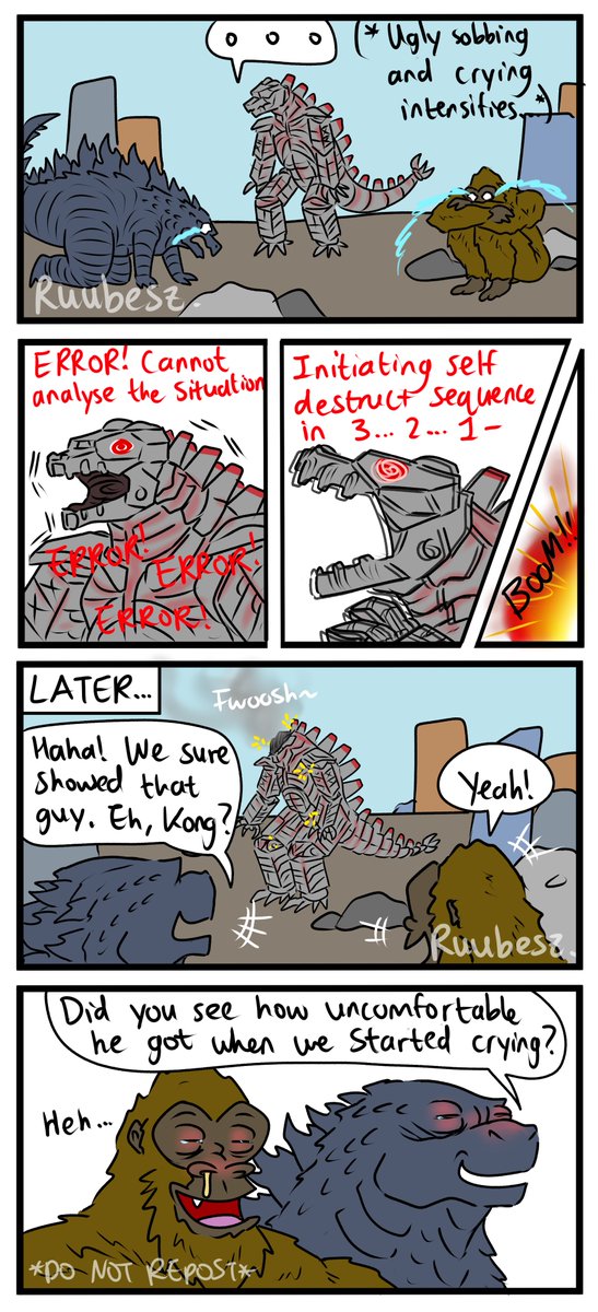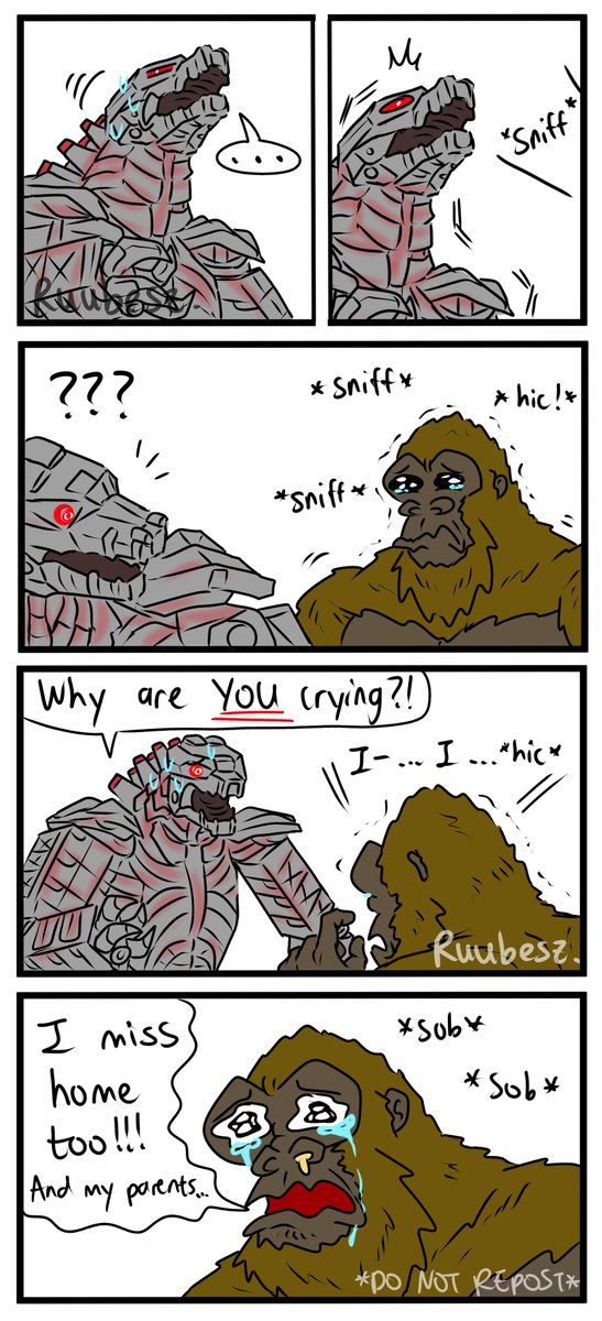 This was all planned, yes. Of course, they didn't actually cry for real haha :) (They did, they are all sad af) MechaG couldn't handle the situation, so he decided to nope out of it #Godzilla #GodzillavsKong #ゴジラ