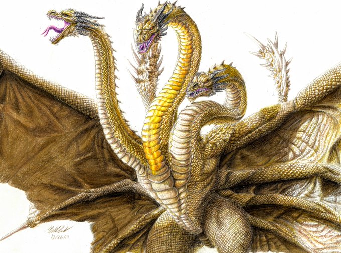 Ghidorah 2019 drawing from 2019. I used color pencils for this guy. #godzillakingofthemonsters #kingghidorah