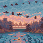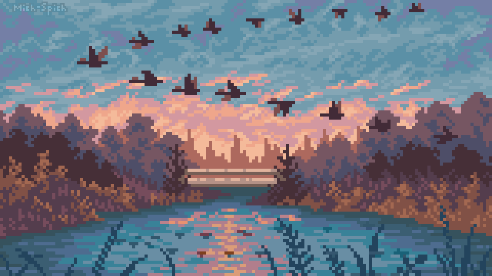 Sunsets aren't complete without geese! @Pixel_Dailies #goose #pixelart #pixelartist #pixel_dailies #aseprite #landscape