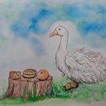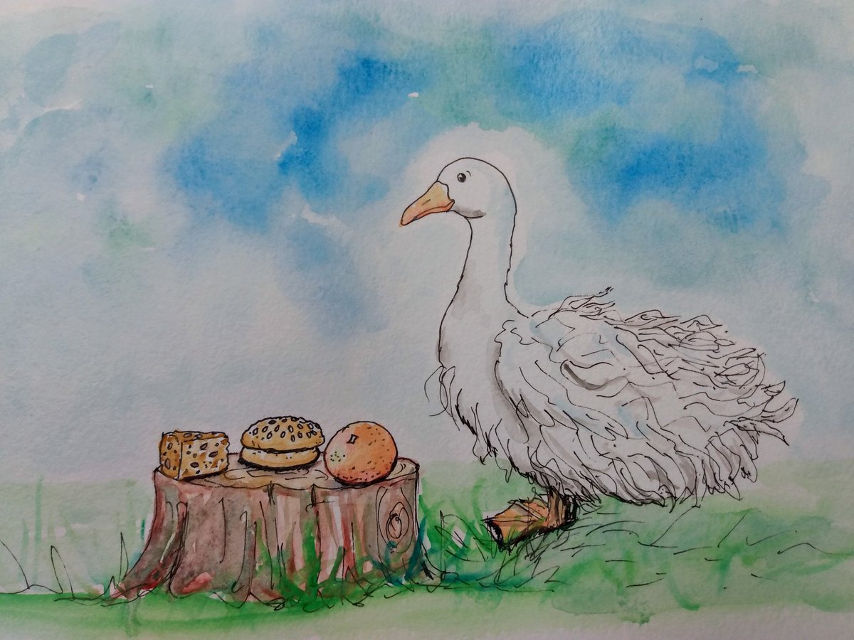 Happy #AnimalAlphabets Monday! Here is my S for Sebastopol Goose taking a gander at a Seville orange, a sesame seed bun and a slice of seed cake. Hope you have a lovely week!💗💗 @AnimalAlphabets #breedsofanimals #goose #sebastopolgoose #sevilleorange #seedcake #sesameseedbun