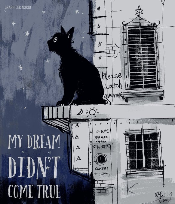 遠い空はもうすぐそこなのに 夢はまだ叶ってないけど 今日は髪をカットしたので 気持ちいいです please watch over me #illustration #drawing #picturebook #catlover #猫好き #graphicdesigner #artdirector #blackcat