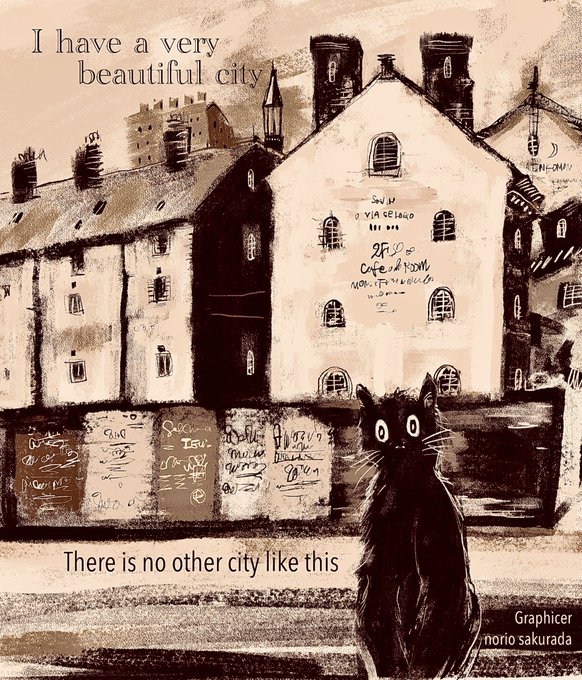 こんなに好きな町は他にない 猫の大好きな場所 a city with a lot of graphics #illustraion #drawing #illustrationart #blackcat #catlover #graphicdesigner #artdirector #picturebook #絵本 #絵本作家