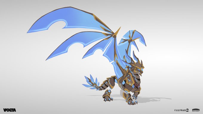 Synergetics Cyberscale Skyscale. A while ago I was asked to design a skin based heavily on Asura technology for #GuildWars2 artstation.com/artwork/nExaLE (Thanks to ArenaNet & Volta for the opportunity. Copyright © 2022 ArenaNet. All right reserved. Shared with authorization)