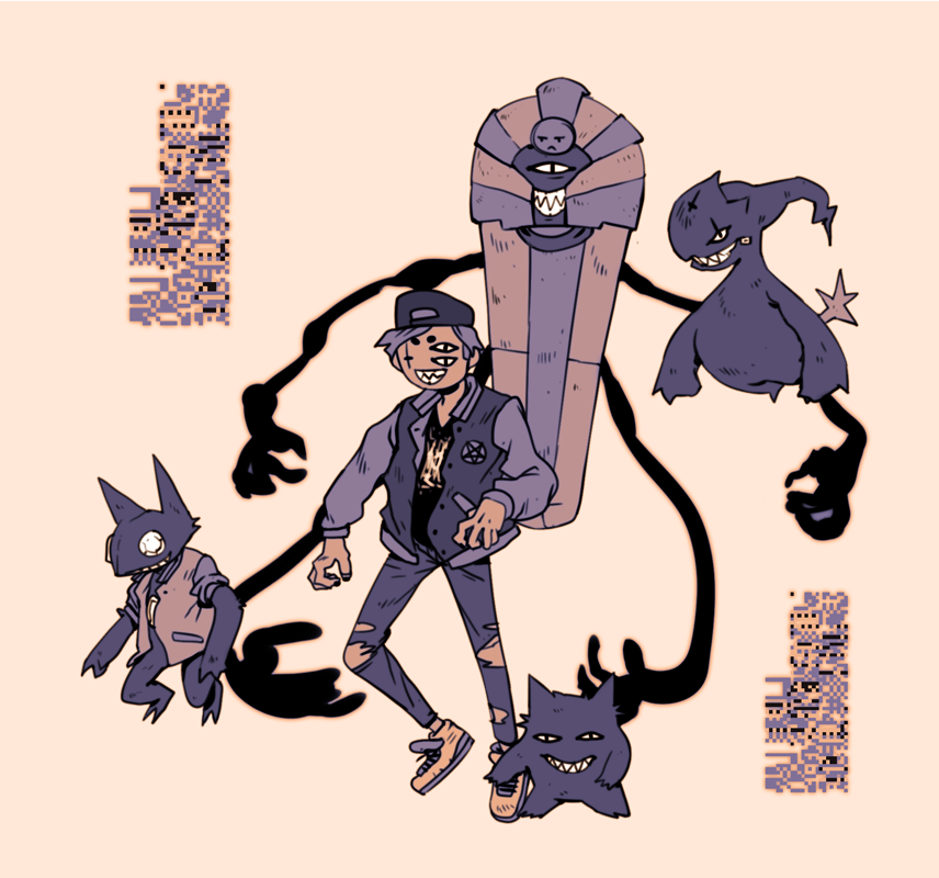 I’ve drawn my pokesona once a year since 2016..! ♡ I’m not a #gymleadersona, but I run the Double Moon Pokesanctuary. My Gengar, Chorizo, is always by my side.