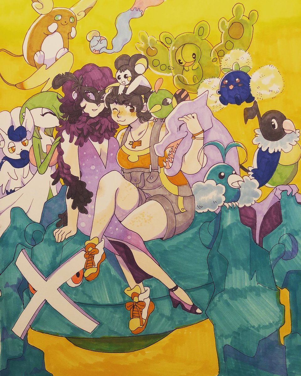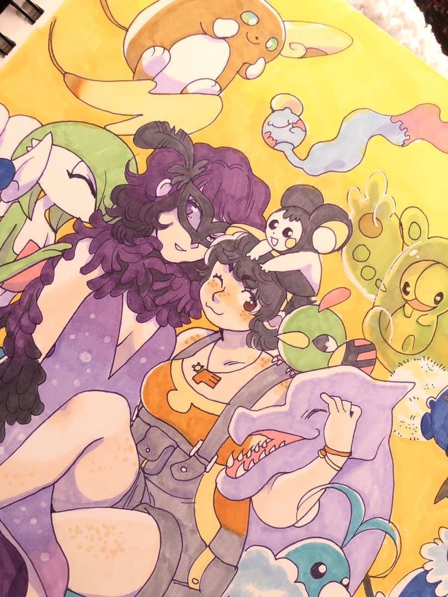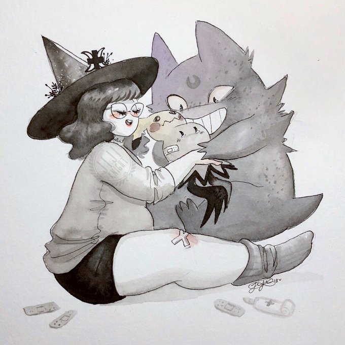 I’ve drawn my pokesona once a year since 2016..! ♡ I’m not a #gymleadersona, but I run the Double Moon Pokesanctuary. My Gengar, Chorizo, is always by my side.