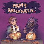 The veils between worlds become thin on #Halloween! The perfect time for a spooky crossover with my husband's @GrisleyComic! 🎩👻 Also starring: @belzebubs_band @lastplacecomics @TheDoodleDemon and @swordscomic #HappyHalloween #happyhalloween2022